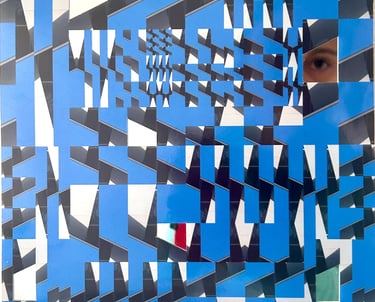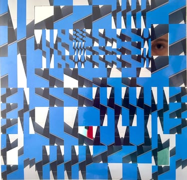 SOY es la evolución natural de una investigación que comenzó con los espejos de Multiverso Arquitectónico. Como fotógrafa y arquitecta, utilizo mi archivo de fotografías como materiales pictóricos — a través de postproducción digital creo obras abstractas que invitan al espectador a sumergirse en un mundo lúdico y formal. Los vacíos funcionan como portales que muestran la dualidad entre lo real y lo ficticio.